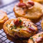 These crowd-pleasing potato snacks are crispy, cheesy little delights that are potato gratin stacks. We use bacon, parmesan, and garlic to create on-the-go potato treats that can be dunked in your favorite dipping sauce or served alongside breakfast omelets.
